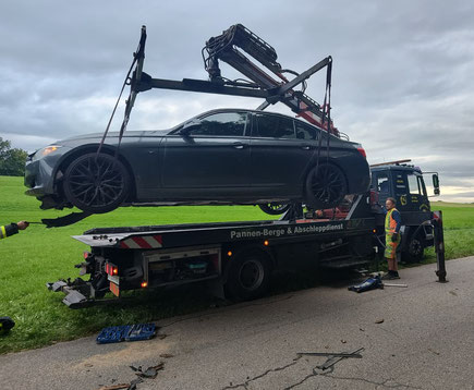 PKW fährt über umgestürzten Baum, 05.09.2025
