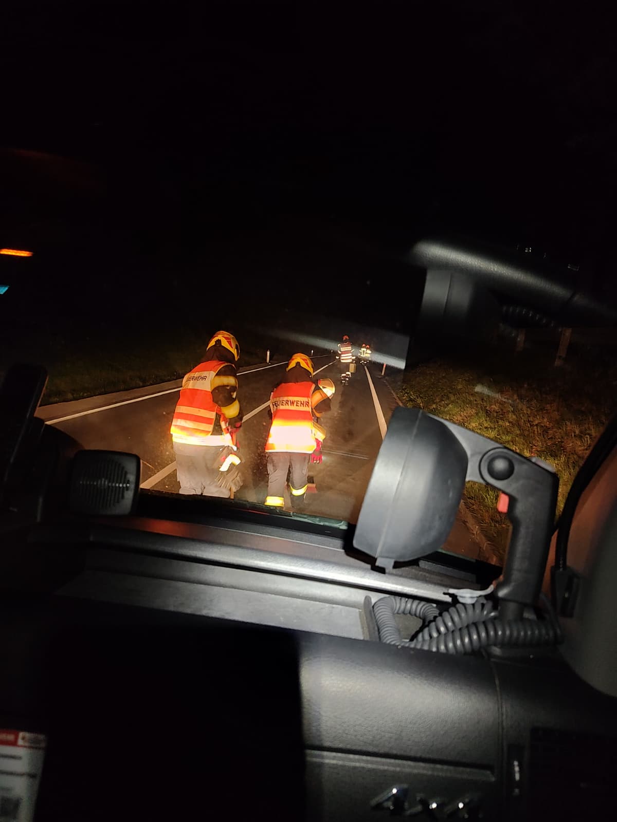 Am 10.10.2025 wurden wir um 21:06 Uhr gemeinsam mit den drei weiteren Feuerwehren der Gemeinde Gampern zu einer Ölspur groß alarmiert.