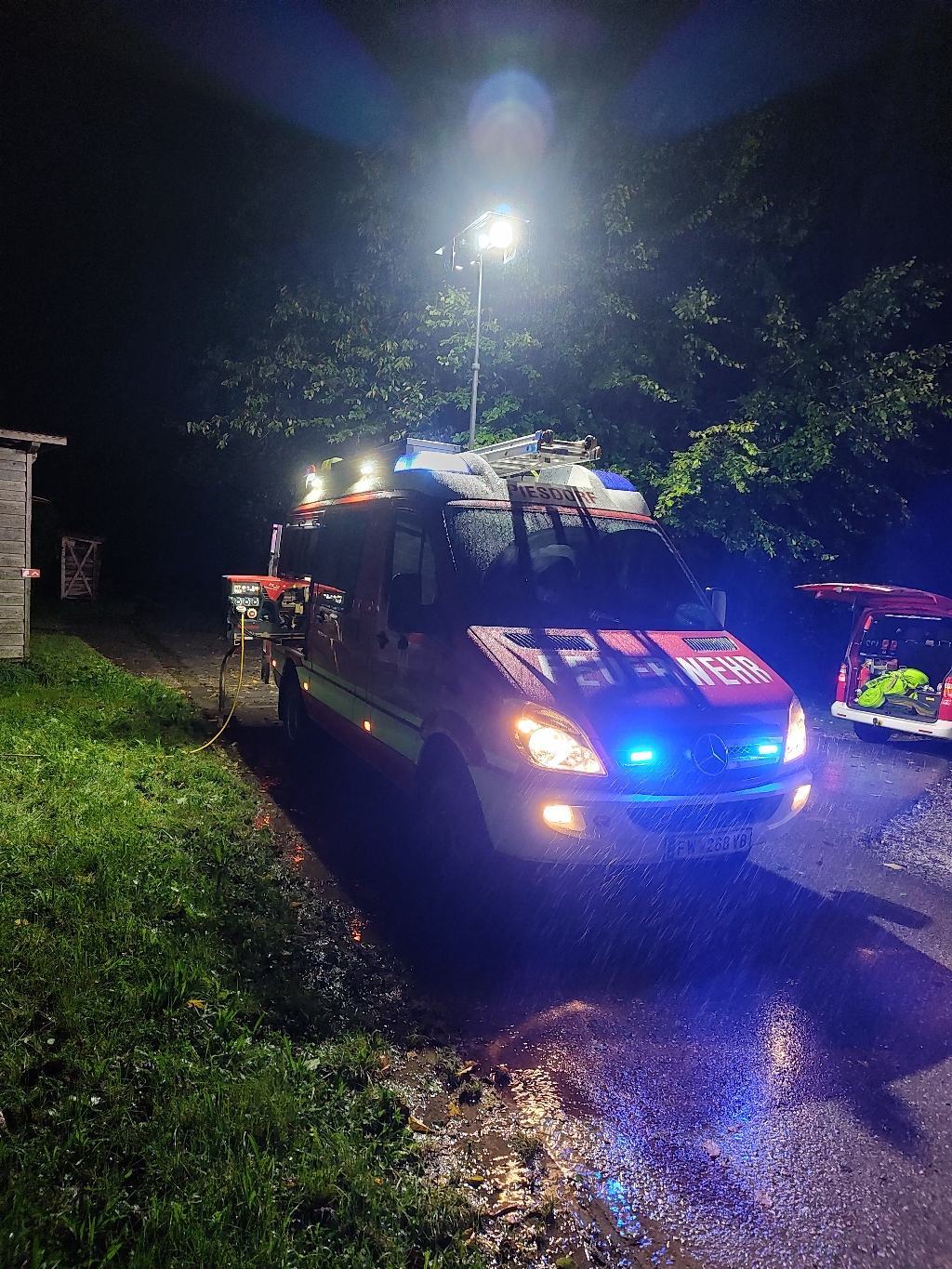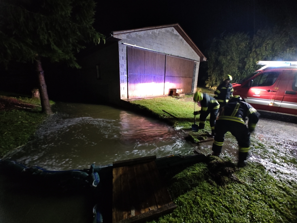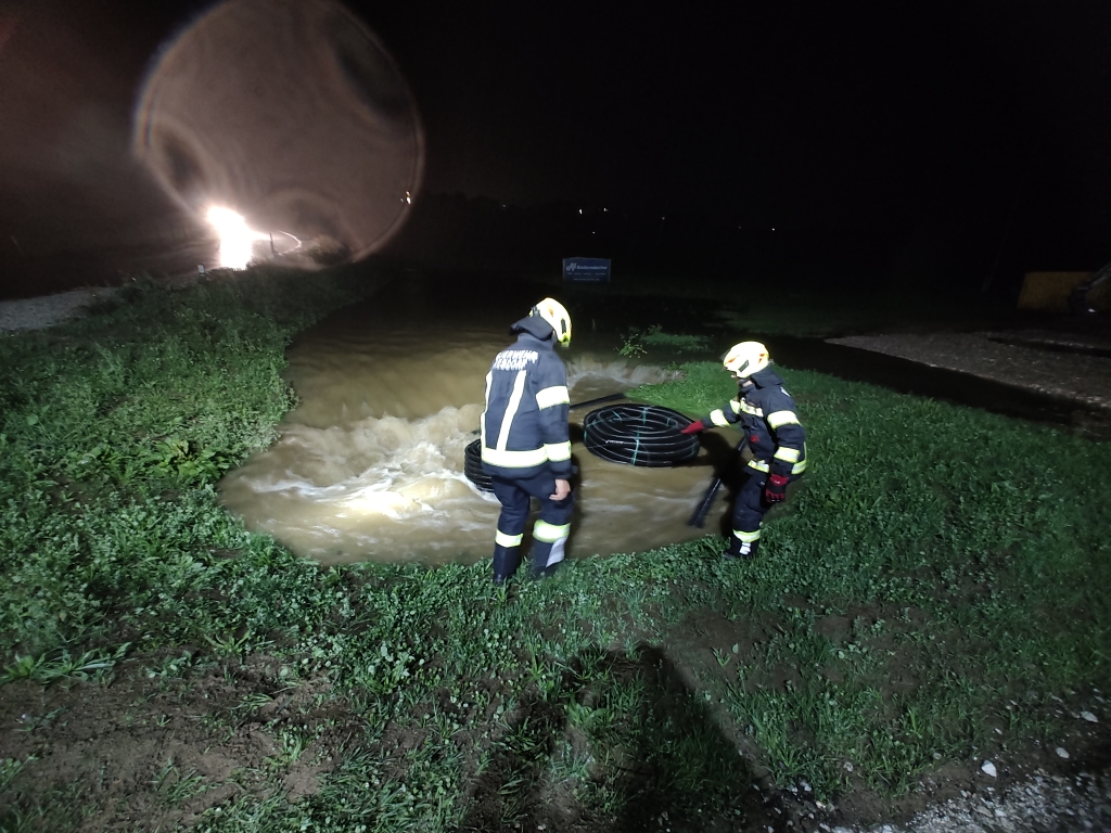 Am Montagabend wurden wir infolge heftiger Regenfälle zu mehreren Einsätzen im Gemeindegebiet alarmiert, da es in verschiedenen Bereichen zu Überschwemmungen gekommen war.