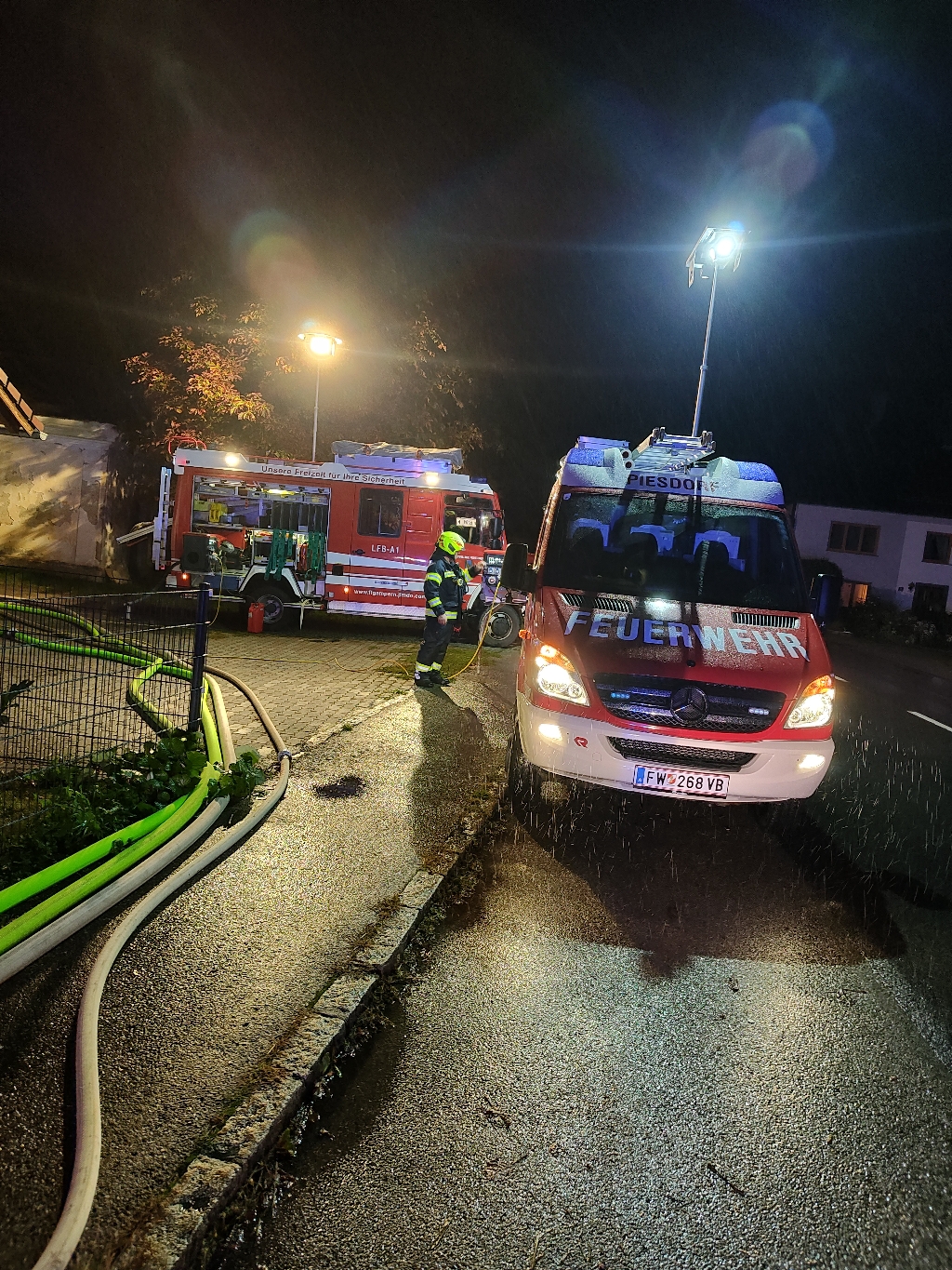Gemeinsam mit den Feuerwehren Baumgarting, Gampern, Weiterschwang und Steindorf waren wir vor Ort im Einsatz. Unterstützt wurden wir zusätzlich durch die Teleskopmastbühne der Feuerwehr Vöcklabruck.