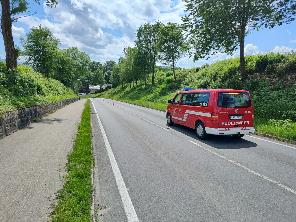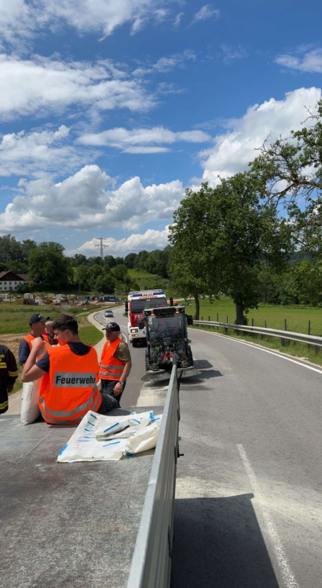 Am 19.04.2024 wurden wir zu Aufräumarbeiten nach einem Verkehrsunfall zwischen Oberheikerding und Pöring gerufen. Ein Kleinbus war von der Fahrbahn abgekommen und umgestürzt, glücklicherweise ohne Verletzte. Während der Bergungsarbeiten sperrten wir die Straße.
